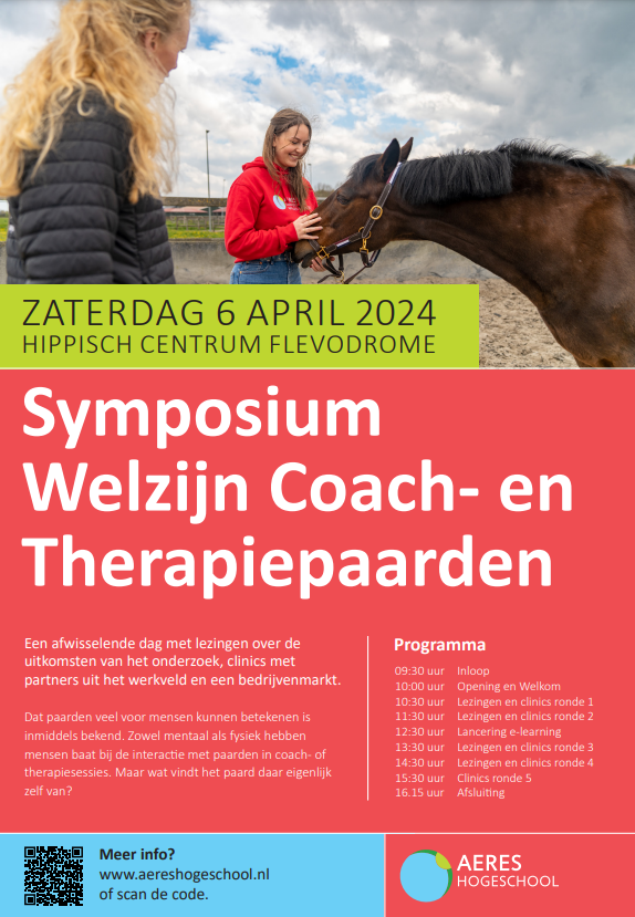 Dat paarden veel voor mensen kunnen betekenen is inmiddels bekend. Zowel mentaal als fysiek hebben mensen baat bij de interactie met paarden in coach- of therapiesessies. Maar wat vindt het paard daar eigenlijk zelf van? Gedurende de afgelopen 2 jaar heeft het lectoraat Human-Animal Interactions van Aeres Hogeschool Dronten hier onderzoek naar gedaan. De resultaten van het onderzoek zullen tijdens een symposium in Dronten openbaar gemaakt worden. Het zal een afwisselende dag worden met lezingen over de uitkomsten van het onderzoek, clinics met partners uit het werkveld en een bedrijvenmarkt. De dagvoorzitter Paul Tonino zal de dag in goede banen leiden met een gezamenlijke ontvangst en afsluiting en daarnaast zal er trainingsmateriaal gelanceerd en beschikbaar gesteld worden. Bovendien is er veel ruimte voor interactie en netwerken.